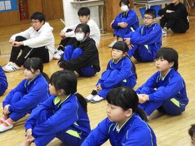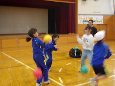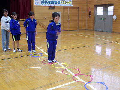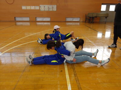毎年二戸市体育協会の方をお招きして「わくわくチャレンジ教室」を行っています。今日は4年生が参加しました。楽しみながら様々な動きを体験することのできるいい機会となっています。