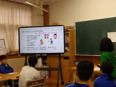 子どもたちは、心がもやもやした時、ストレスがたまった時の自分なりの解決方法を考えていました。
