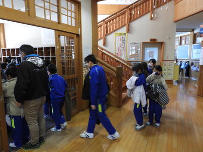 1月28日(火)に避難訓練を行いました。冬季の避難経路を確認することが目的でした。放送をしっかりと聞いて避難をしている高学年。さすがです。