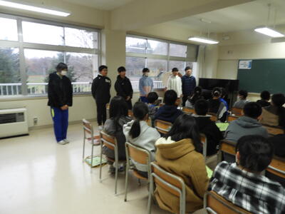 金田一中学校体験入学 投稿: 副校長 (10:48) 11月17日(月)に金田一中学校体験入学が行われました。来年度から同じ学校に通う金田一小学校の6年生とともに中学校生活についてのお話を聞きました。先輩方のたくましい姿を見て、気持ちが引き締まったようでした。