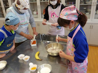 親子で料理をしながらおやつの栄養について考えました。