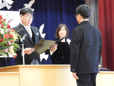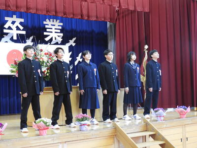 令和7年度卒業証書授与式 投稿: 副校長 (12:54) 3月18日(水)に令和7年度の卒業証書授与式が行われ、6名が本校から巣立ちました。 卒業生は最後の授業を立派な態度で終えることができました。それを見ていた1~5年生は、その姿を胸に焼き付けました。